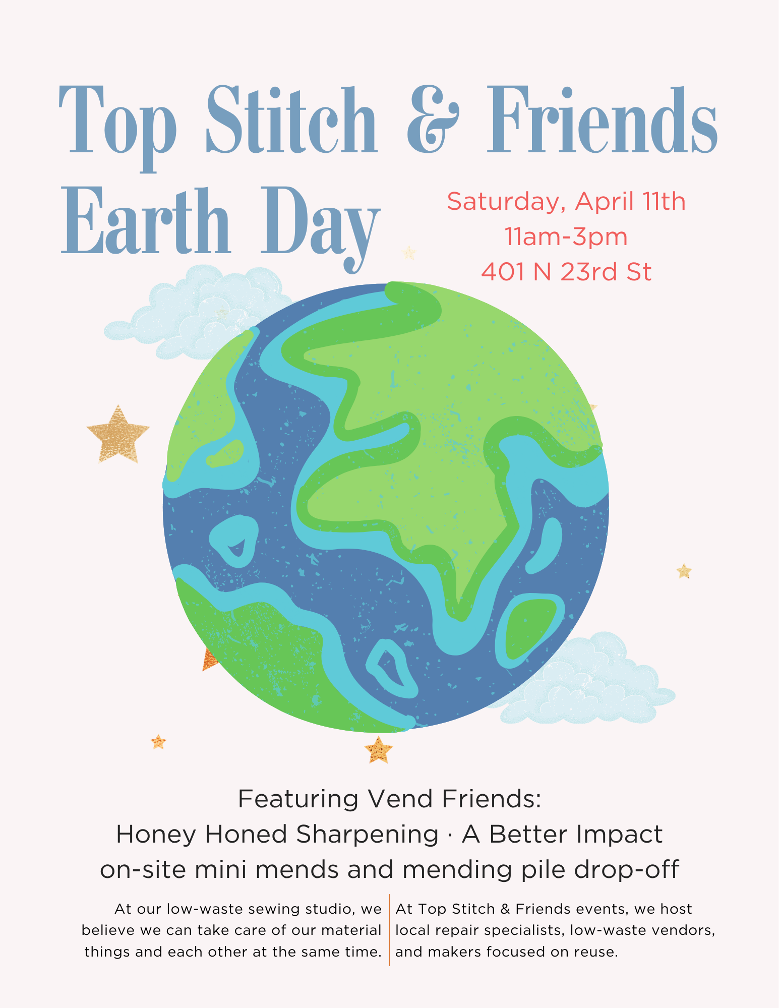 This is the day of the month where we open our doors and accept appointment-free walk-ins. Bring in a single item with minor issues for an on-the-spot mini-mend, drop off your whole mending pile for pick-up at a later date, or just come say hi and check out the studio. We love to meet new people and chat about sewing and sustainability!