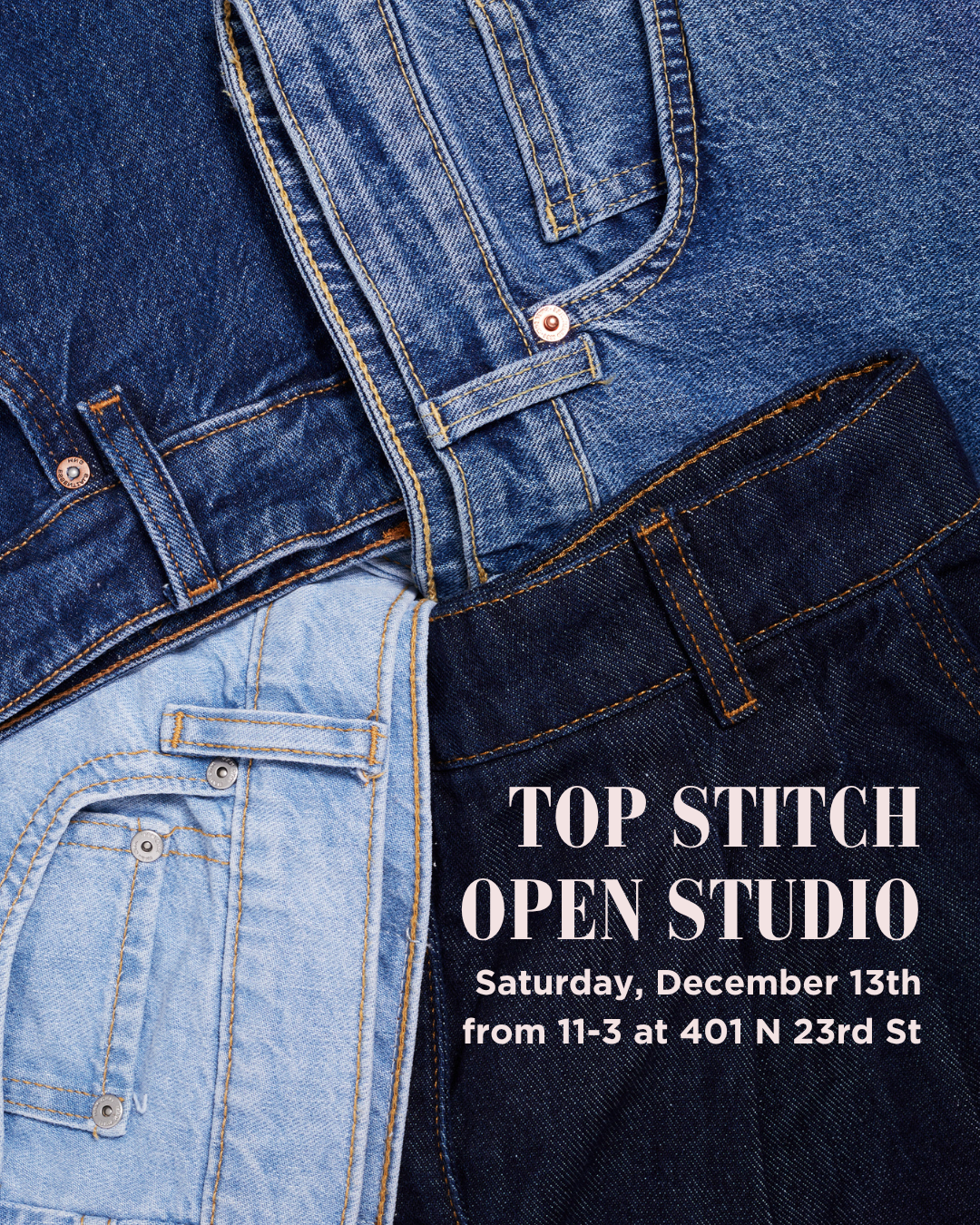 Open Studio is the day of the month where we open our doors and accept appointment-free walk-ins. Bring in a single item with minor issues for an on-the-spot mini-mend, drop off your whole mending pile for pick-up at a later date, or just come say hi and check out the studio. We love to meet new people and chat sewing and sustainability!